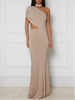 This maxi dress is a stunning blend of elegance and allure. The one-shoulder design with draped fabric adds drama, while the choker neck enhances sophistication. A strategic cutout at the waist flatters the figure, and the floor-length, form-fitting skirt ensures a graceful, chic appearance, perfect for galas or evening events.