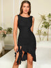 Embrace elegance and sophistication with our ruched midi dress. Featuring a form-fitting silhouette that flatters every curve, this dress comes with a unique flounce hem detail adding a touch of playfulness. Its sleeveless design, coupled with the contemporary neckline, makes it perfect for both day and night occasions. Made with premium fabric, it ensures comfort without compromising style.