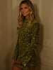 A dazzling blend of glamour and modern sophistication, this long-sleeve mini dress is adorned with shimmering sequins that catch the light from every angle. Designed to contour the body with a refined, flattering fit, it delivers an instant statement—bold, radiant, and irresistibly luxurious.The mini-length silhouette brings a youthful, high-impact energy, while the long sleeves balance the sparkle with an elegant, streamlined touch. Whether under spotlight or soft ambient lighting, the full sequin construction creates a captivating play of brilliance, making it the perfect piece for nights that demand attention.