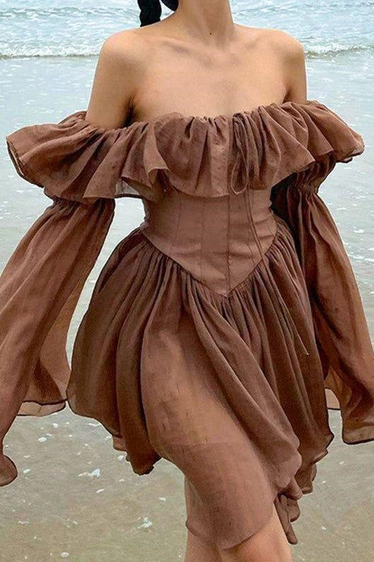Discover timeless elegance with the Milk Chocolate Vintage Ruffled Off Shoulder Midi Dress. This charming Off Shoulder Midi Dress features beautiful ruffled details and a flattering silhouette, making it perfect for any special event. The luxurious fabric ensures comfort while adding a touch of sophistication. The off-shoulder design adds a romantic feel, and the midi length enhances your style with classic appeal. Ideal for weddings, dinners, or any occasion where you want to stand out, this dress blends vintage charm with modern flair. Shop now to add this stunning dress to your collection.