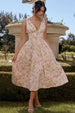 Bloom with beauty in our sexy floral sundresses for women! This breezy light pink floral midi dress in our boutique featuring a ruched trim plunge neckline adorned with a cute bow tie, adding a touch of sweetness to your look. Sleeveless with a corseted bodice and a V-shaped low-waistline, it accentuates your curves, while the flowy flared skirt adds a flirty flair. Complete with convenient side pockets and a hidden zip back, this beautiful summer outfit is perfect for garden tea time or a casual date with friends.