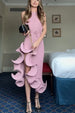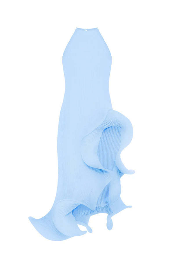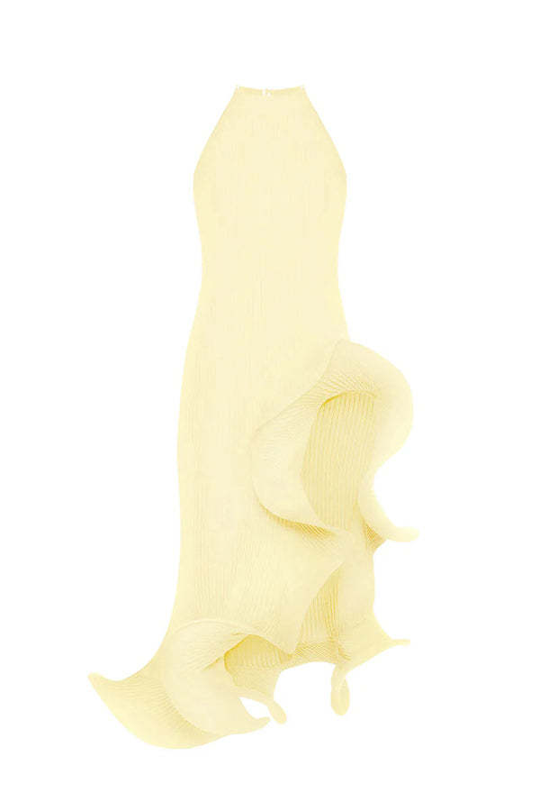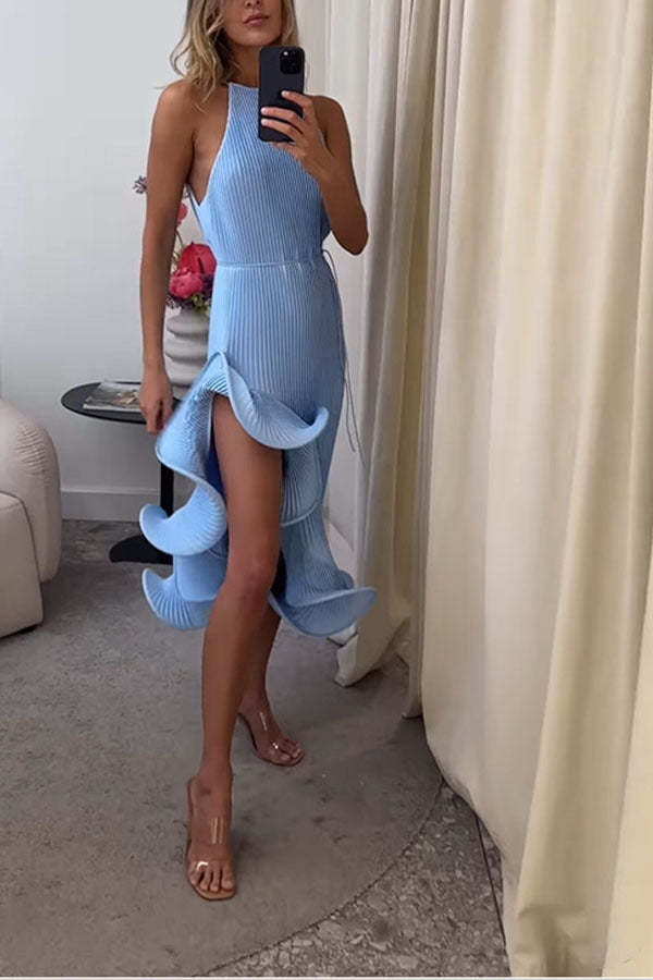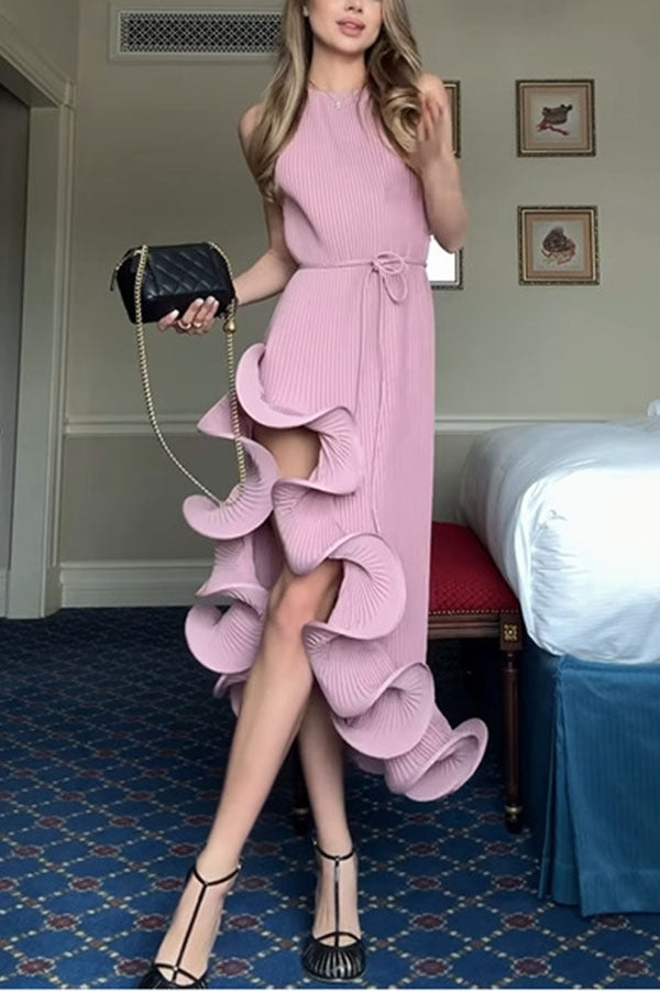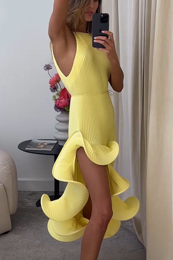 Solid Irregular Ruffle Midi Dress