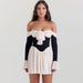 Get ready to steal the spotlight at any shindig with this oh-so-chic off-the-shoulder mini dress! Crafted from soft mesh and polyester, it's an absolute head-turner. What sets it apart? The elegant and contrast color sweetheart neckline adorned with a charming self-tie bowknot that adds a touch of whimsy. Long sleeves with flared cuffs and a drop-waistline leading to a flowy flare miniskirt make this unique dress a true visual delight. Dive into our boutique for more trendy party dresses and women's clothing, and don't forget to jazz it up with some bold accessories.