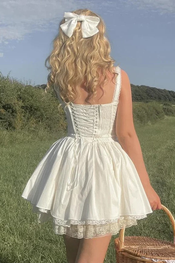 White Back Lace Up Mini Dress
